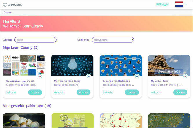 Via het project LearnClearly kunnen leerlingen ak en volwassenen continu oefenen met hun kennis van vooral het vak aardrijkskunde. Idee is dat je door te oefenen, je hersenen soepel en jong houdt. U wilt vaak best ook iets leren van onderwerpen, die misschien buiten het eigen interesseveld liggen of die u in de opleiding hebt gemist of waar mensen om u heen mee bezig zijn en waar u ook wel eens wat van wilt weten.