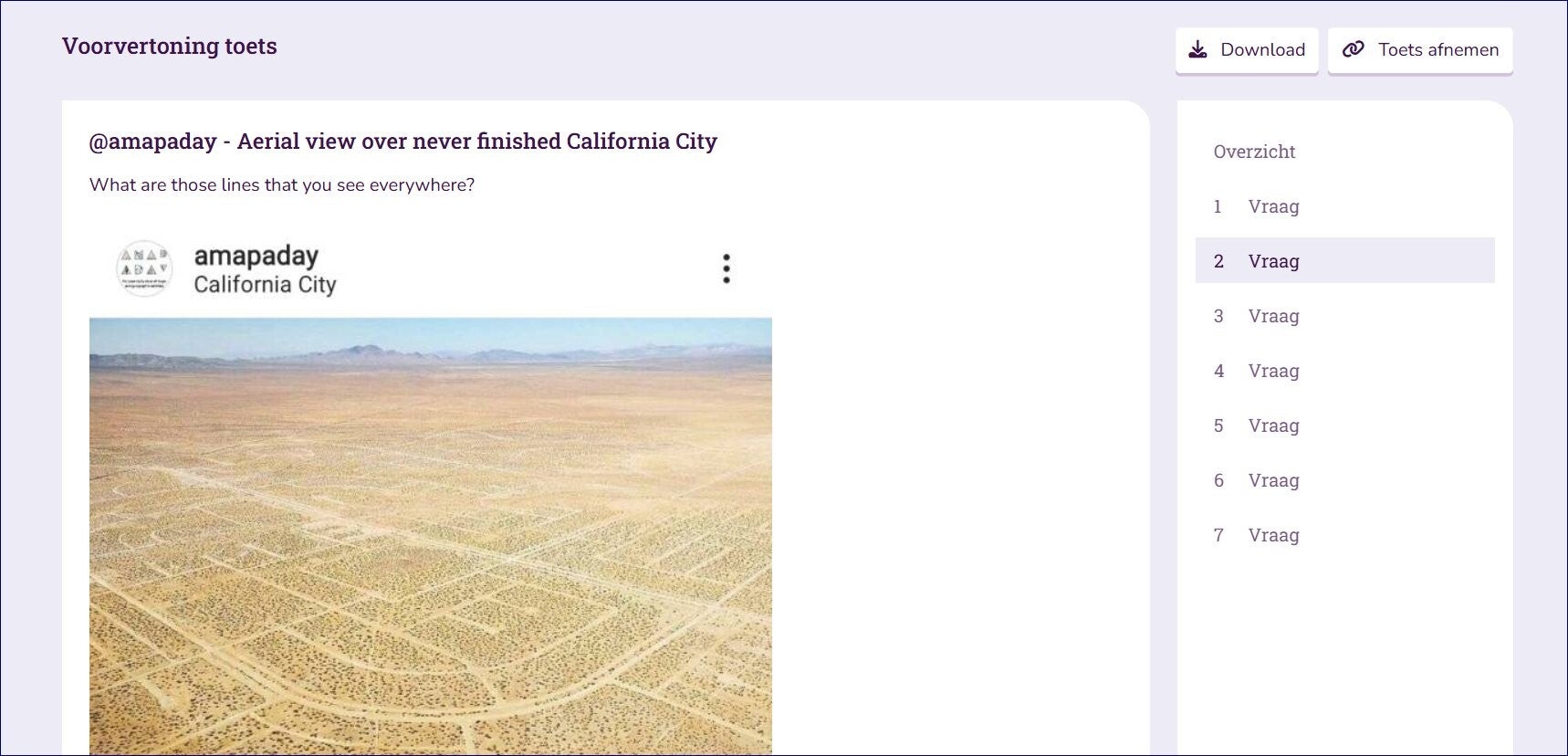 - Elke toets is direct aan leerlingen als oefentoets aan te bieden binnen Wikiwijs: geen download nodig (te linken).